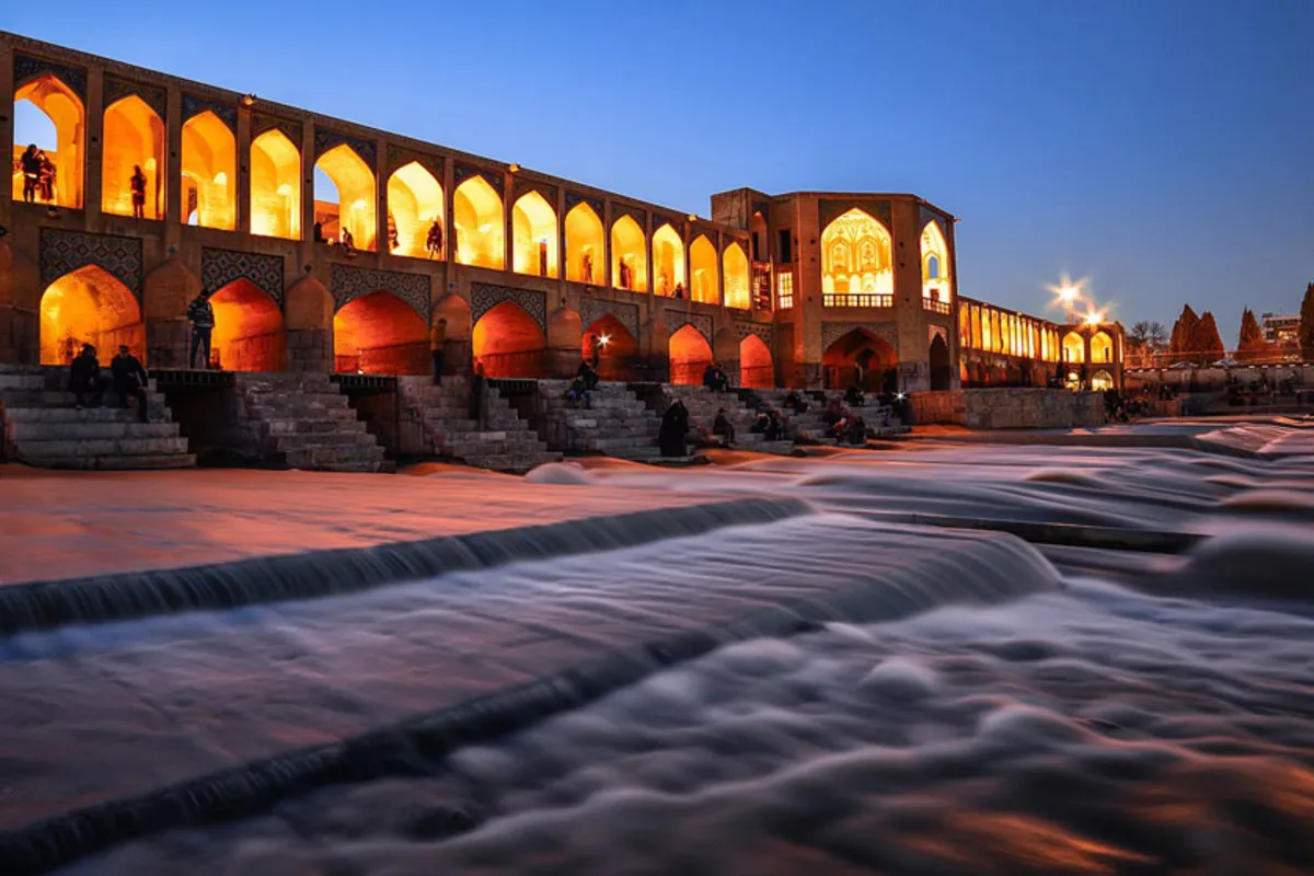 بازدید از پل خواجو اصفهان در شب تجربهای فراموشنشدنی است.نورهای زرد و طلایی که روی طاقهای پل میتابند، انعکاسشان در آب زایندهرود،و صدای آرام جریان آب،فضایی شاعرانه میآفریند که هر بینندهای را مسحور میکند.